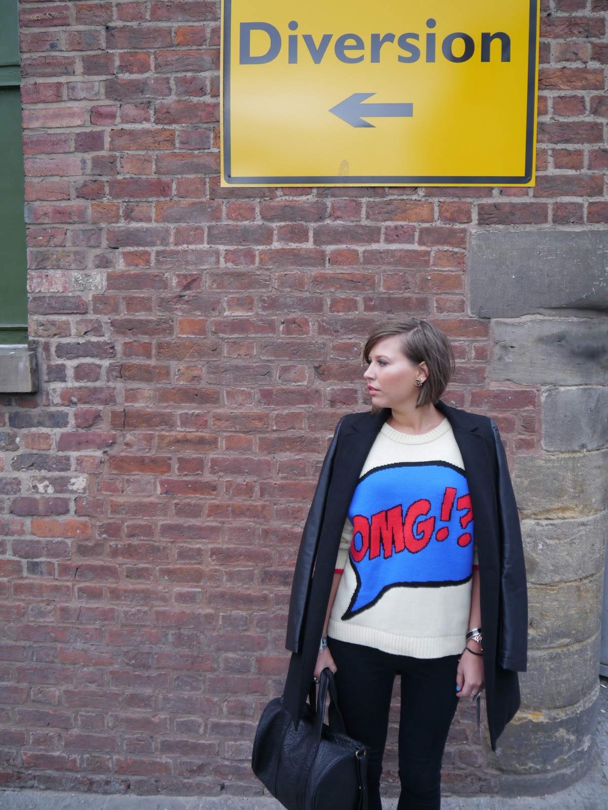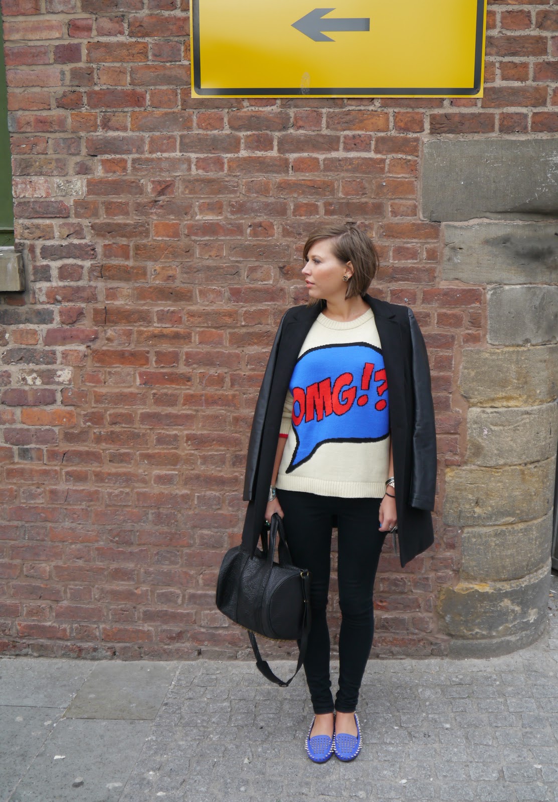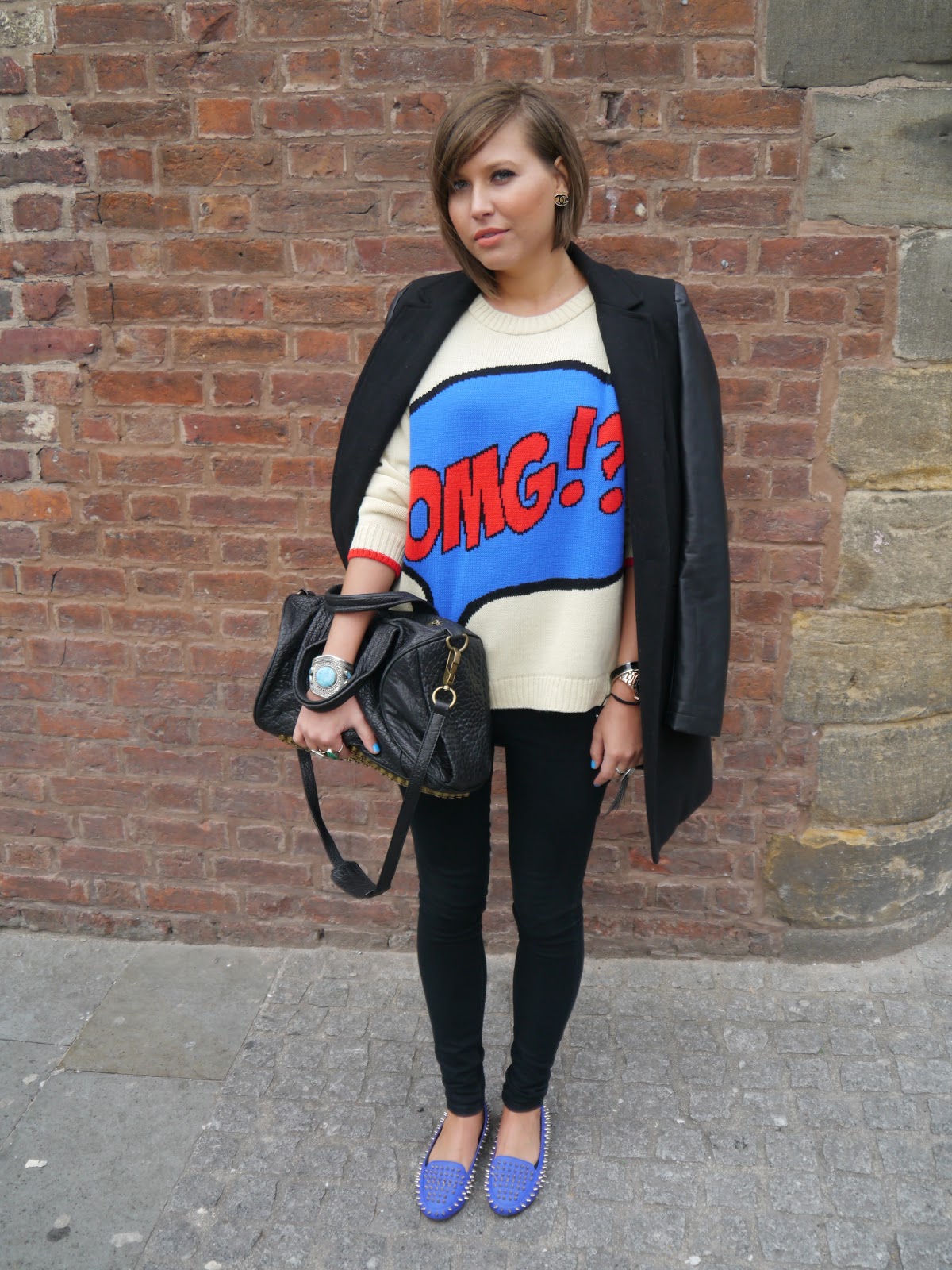I love your OMG!? sweater and your Alexander Wang bag is beautiful 🙂