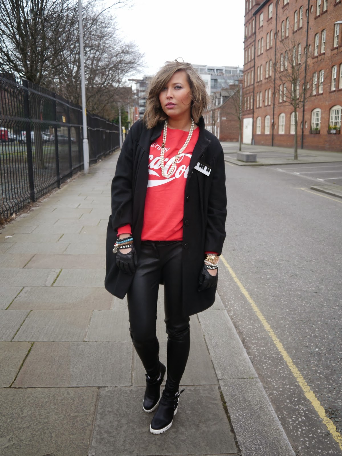 Famous 80’s trend – big brand logos on T-shirts and Jumpers- are back ! My “Enjoy Coca-Cola” jumper is from Primark (but I saw exactly the same in Topshop the other day). My leather pants, another hot trend derived from the 80’s fashion which I absolutely adore, are from Zara. My Russian scarf kept me very warm on that day as well as added some colourful “warmness”to my outfit’s dark tones. I’m looking forward to spring, can’t wait to wear bright and pastel colours! Having a bit of sun would also be amazing 🙂 My music link for today is brilliant track from Clean Bandit ! This track been overplayed on every radio stations, but I do still like it . Have a brilliant week my lovely readers. I will speak to you soon
