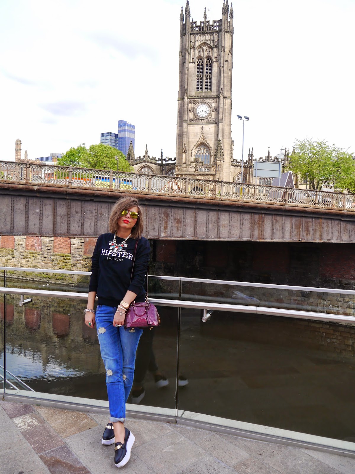 RU: Привет! Не могла устоять перед случаем запечатлеть мой вчерашний лук, когда совершено случайно оказалась в центре Манчестера, да и погода к этому отнеслась благоприятно:) Мой ” хипстеровский” реглан из Zara, джинсы из Primark . Хочу признаться, что всегда относилась с опаской к джинсам из этого магазина, но когда увидела их на витрине и решилась всё-таки рассмотреть их поближе, была невероятна удивлена качеству и стилю, даже не побоюсь сравнить их с более дорогими и похожими bf моделями из Gap и даже Diesel – одним словом, супер.