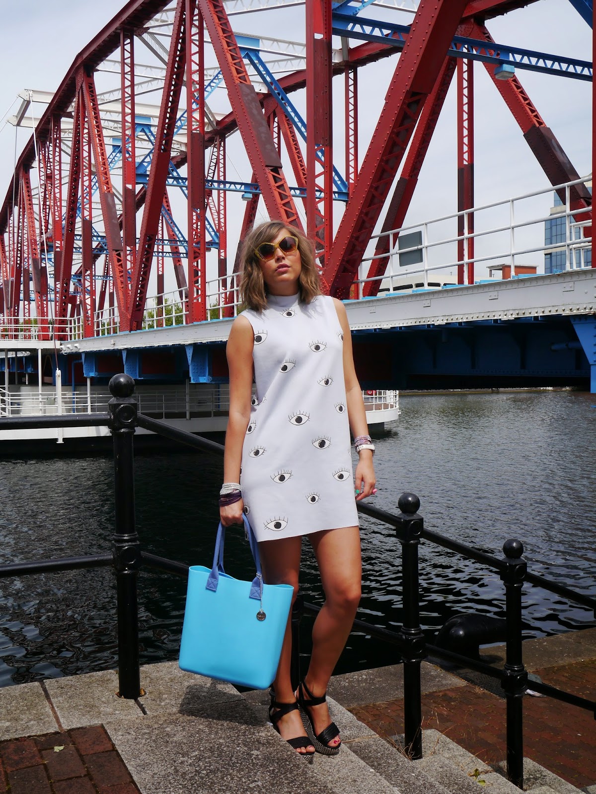 Today I want to write about a fabulous online bag company – Fablou http://fablou.com/ Their bags are made of “oh so easy to clean ” eco-friendly waterproof silicon materials which look extremely stylish and practical, you can add a pop of colour to any outfit just by adding one of these colourful candy looking bags. This famous Zara dress is a perfect completion to my today’s outfit. The wedges I got from Aldo, they add an eclectic 70’s look along with these very unique Star sunglasses by Jeepers Peepers bought on sale from River Island. I love that bohemian frame shape inspired by Miu Miu iconic design.
