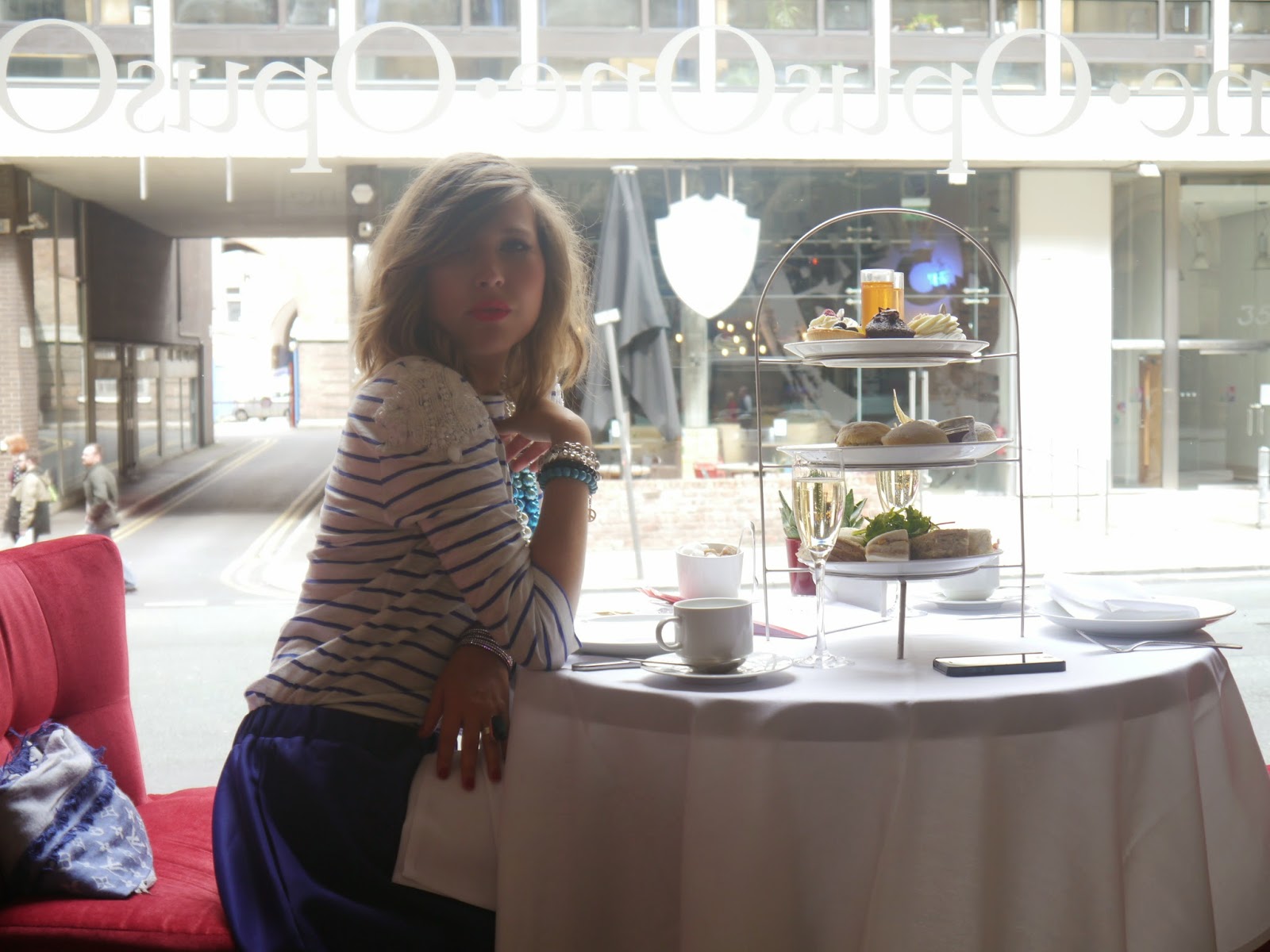 The National Afternoon Tea week is in full swing and the smell of freshly baked scones and Earl Grey is in the air. I was very privileged to be invited for afternoon tea for two at one of the best places in Manchester – Opus One bar and restaurant inside the Radisson Blu Edwardian Hotel on Peter Street . The place is an “oasis” of luxurious tranquility and elegance in a theatrical style of Manhattan lounge bars of the 1920’s where the red walls and lights make a dramatic contrast to the black furniture and antique gold wall coverings.