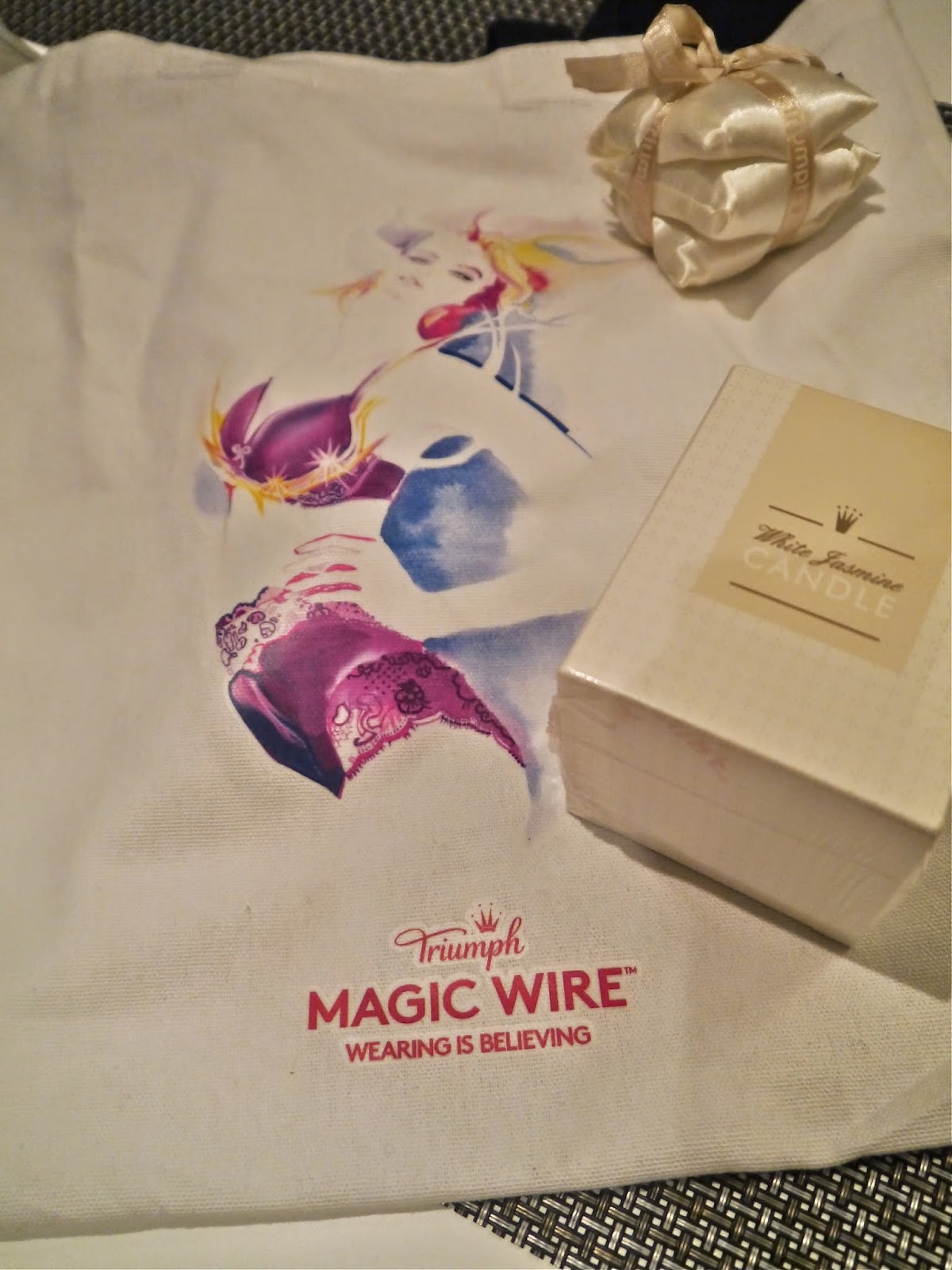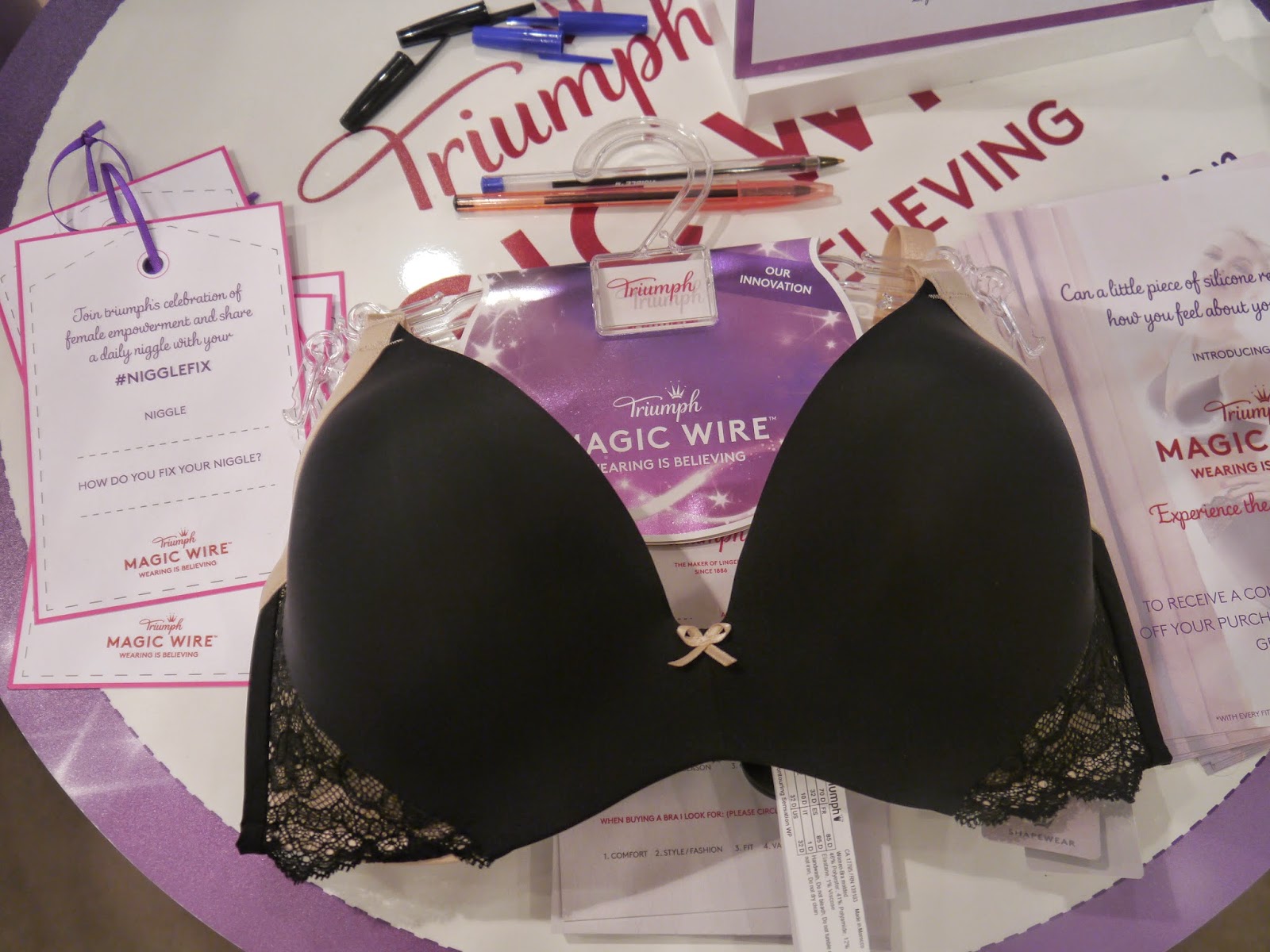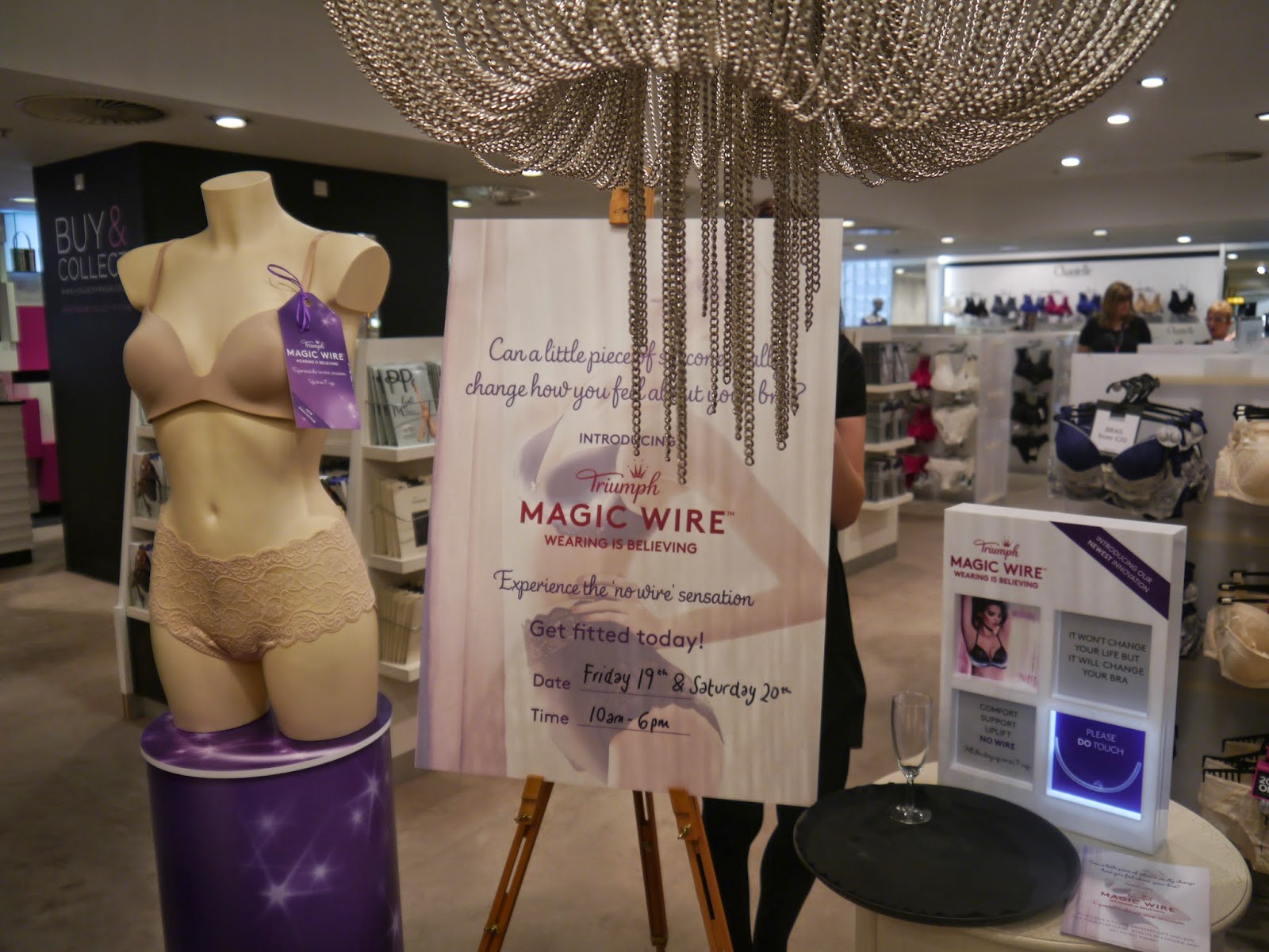 Last week I was invited by Triumph http://uk.triumph.com/ to visit House of Fraser lingerie department in Manchester to have a first look at their new ” Magic Wire” bra . PR team of Triumph created a magical atmosphere full of champagne and anticipation for the “premiere” of this revolutionary innovation – a bra with unique “magic wires” that provides you with the unprecedented comfort and support and feels like a second skin. So what makes this great product to stand out from the multitude of other bras ? According to Triumph designers, “it offers an invisible integrated silicon strip in the moulded cups that supports the contours of your bust and creates a perfect cleavage without pinching or constricting your every move” and I could not agree more after trying it!