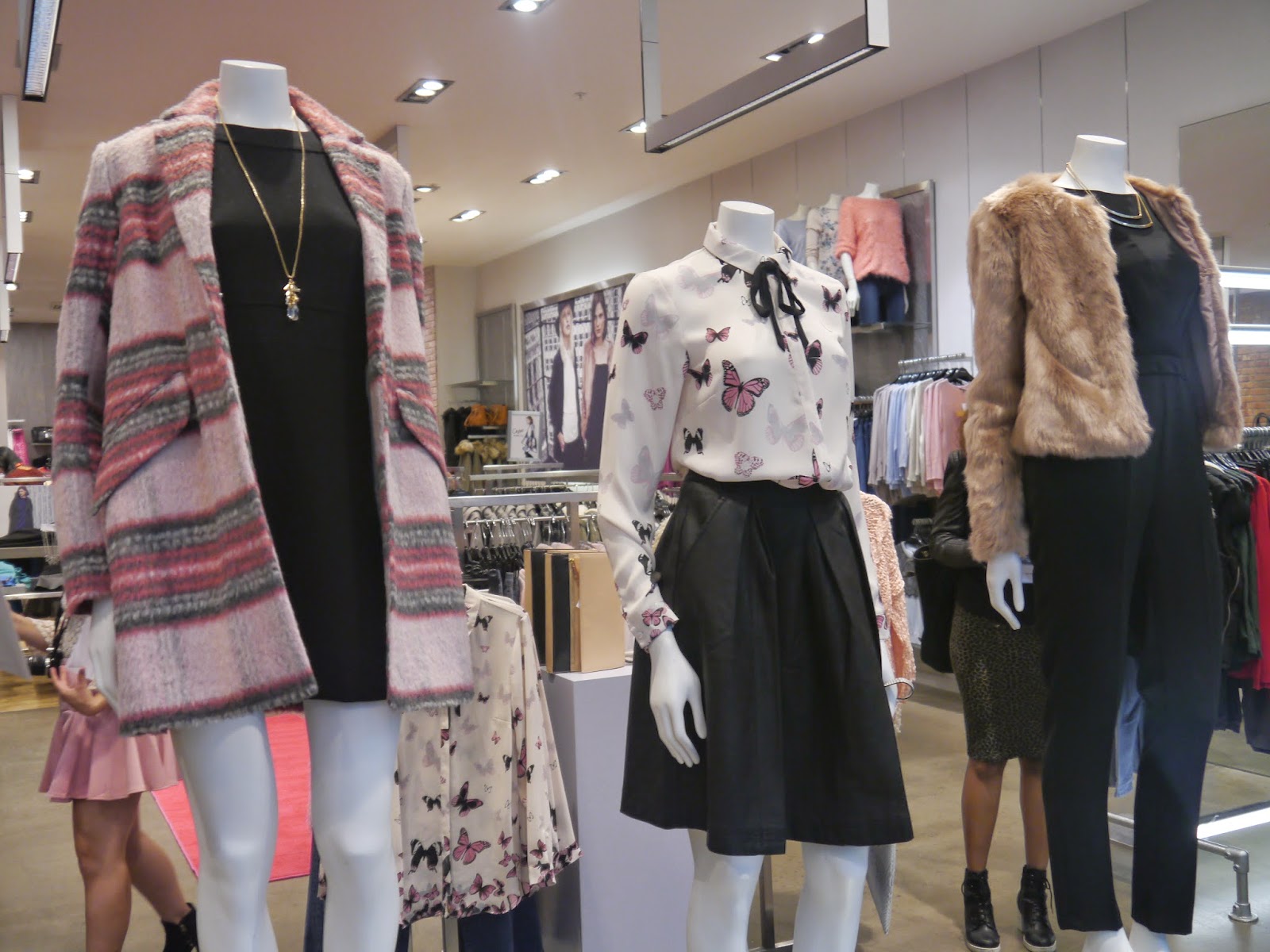 I’m very exited about new trends that winter bring this year so a kind invitation by Arndale Center team to preview Warehouse A/W14 collection was exactly what I needed. I was blown away by a vast selection of furs, sleek skirts and fine knits . Models for the show were sales assistants of the shop and I must say they all did a great job, be afraid Cara Delevingne, be very afraid as there’s lots and lots of upcoming talent going your way! The collection introduces us to a “yummy” world of soft pastels in candyfloss pink and sweet ice-cream shades. Very warm and fluffy textures combined with knitwear co-ords look incredibly stylish. I’m in love with the staples that were given a luxe update this winter . Now it’s all about long line tops in cashmere or cotton and shirt dresses layered over ribbed tube skirts. The outwear in neutral colour palette lays the foundation for this A/W outwear. You can mix a classic parka or cape with ripped denim or with skinny ribbed leggings. A monochrome animal print coat is a Must this season. You can style it with vibrant reds fine knit jumper to give your look a striking edge . Think bohemian New Yorker meeting Manchester Northern Quarter fashionista . It is an ideal time to be fearless with colour – if it’s grey outside it doesn’t mean we have to wear only grey and black! Add a fluffy fur collar to your outfit and declare the Autumn Colour War. Just have a look at the collection itself, you will get instantly inspired by the contrasting palettes and variety of textures.