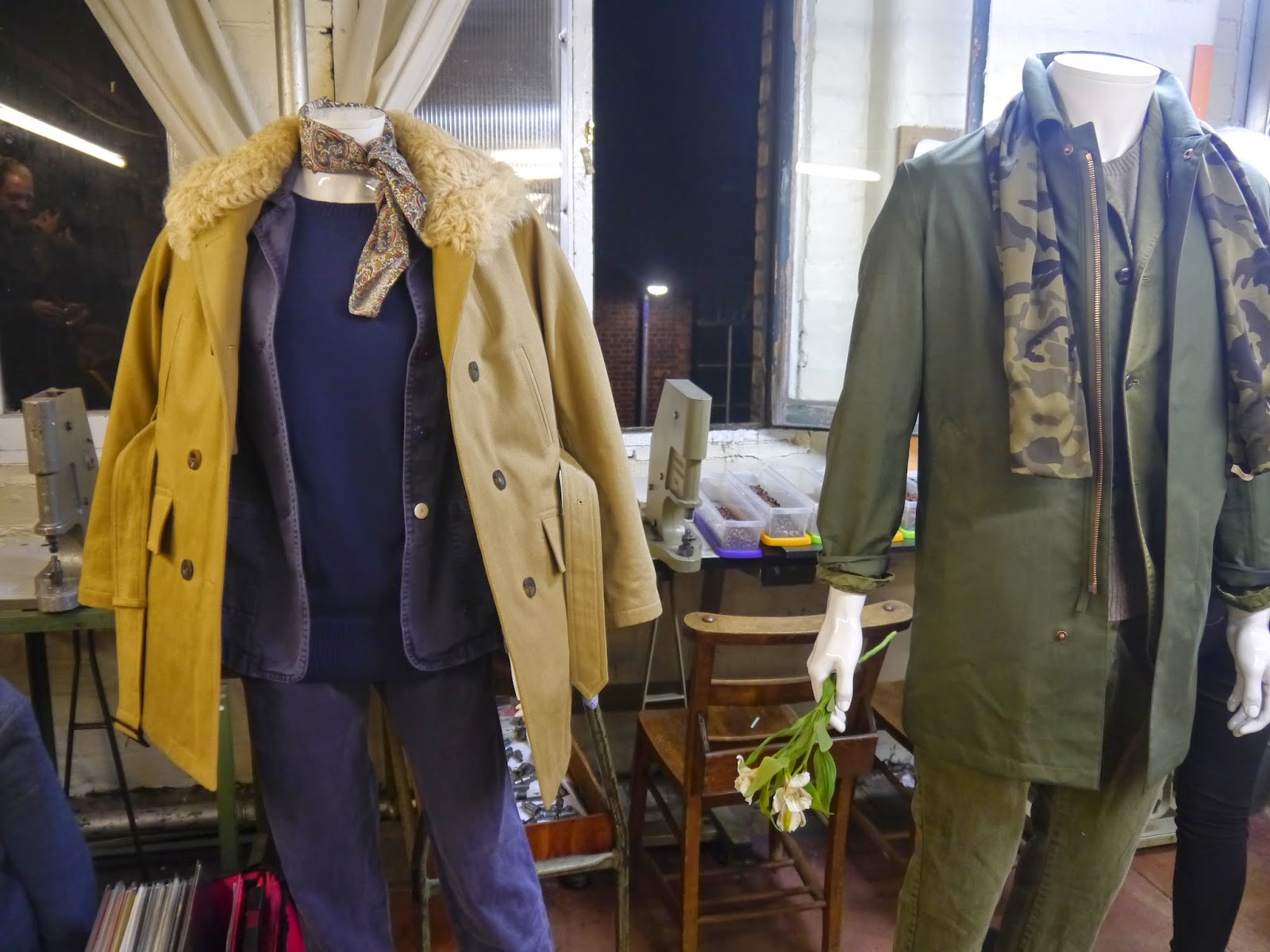 I was invited to a fantastic place where fashion and history are intertwined as a single unit, where tradition and style are embodied in a unique closing whose creators, Private White V.C., can rightly claim the title to be the most Mancunian fashion brand. Influenced by classic war pieces and vintage car racing garments Nick Ashley – the brand’s designer and creative director – successfully combines british military legacy with the modern trends creating a perfect mix of classic and contemporary. My excitement knew no bounds when I found out that all the pieces we saw in the shop were actually manufactured in the brand’s very own factory ” secretly” occupying the first floor ( the shop is situated on the ground floor). That was just unbelievable to see the new A/W collection cloths being hand made literally before our very eyes using vintage ” Singers”and the same technics as almost a century ago. Being one of few local manufacturers who survived through the decades staying loyal to their passion for the local tradition and history, Private White V.C. is a rare example of the brand who will always occupy a special niche amongst the multitude of ” fast fashion”labels creating a superb quality and impeccable taste cloths.
