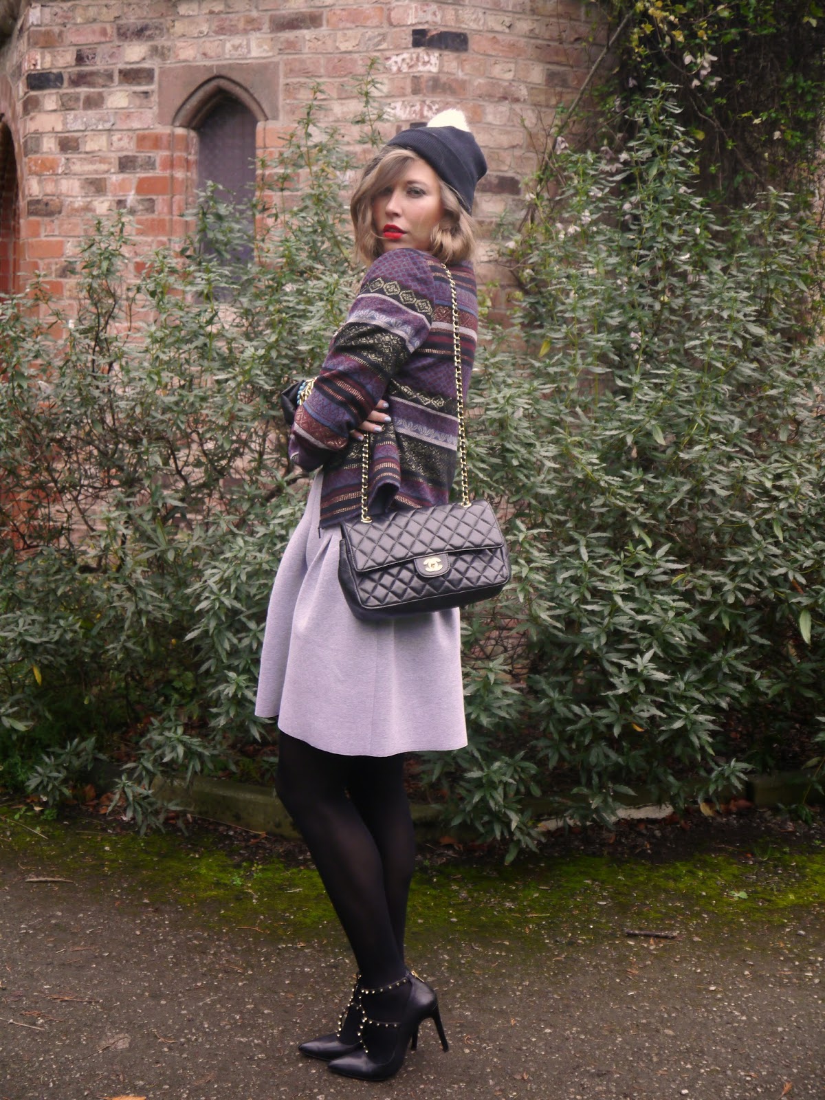 As the awful wet and windy weather is upon us it’s time to invest in a stylish head wear. This beanie I got from London’s boutique Glassworks. It comes with a detachable veil (as you can see in my previous post HERE ) and a white soft pom pom. And by adding my mum’s present, vintage 2.55 Chanel, and studded heels by Banana Republic I created an outfit that can be easily worn for a Christmas Party or just for a stylish night out.
