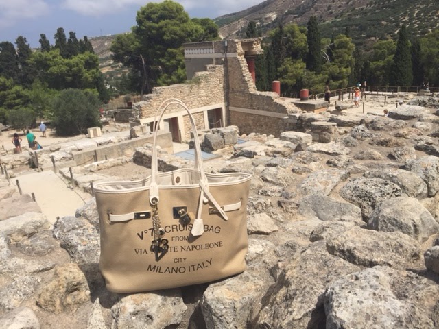 Hello my readers. Today I want to blog about one of my recent Greek holiday looks that I wore when we visited ruins of the most famous historical place in Crete – Knossos Palace. This magical place truly stole my heart. I could not part with my camera even for a minute constantly taking pictures, although the photos below do not do full justice to the beauty of ancient Greece we did our best to capture those mesmerising views for you guys. Its was 34 degrees, so I decided to wear something light – this gorgeous, playful, airy dress – my latest super find from Gap. I instantly fell in love with its style and texture. To complete my look I added my new V°73 bag that I’ve been very kindly sent by art director Elisabetta Armellin. I always was a massive fun of this Italian brand and I already own a bag from previous collection. The brand name V°73 derives from the number 73 of the Atelier where Elisabetta worked, and the memory of her experiences there are incorporated into the collection via the very same colours that she used in her paintings. Featuring a symphony of textures and contrasts, each V°73 bag is hand-painted to give a mesmerisingly 3D effect. V°73 offers a distinctly tongue-in-cheek take on the modern phenomenon of the IT bag. My unique tote is from new S/S 2015 called Cruise Montenapoleone Sandshell Bag HERE I just adore its charming Italian design and detachable charms. Plus, the spacious structured interior and removable pouch make it oh-so easy to organise your things and transport them in style, its a perfect bag for traveling as it has so many useful compartments and a very practical design. I hope you all having a great week. I’ll speak with you all soon X