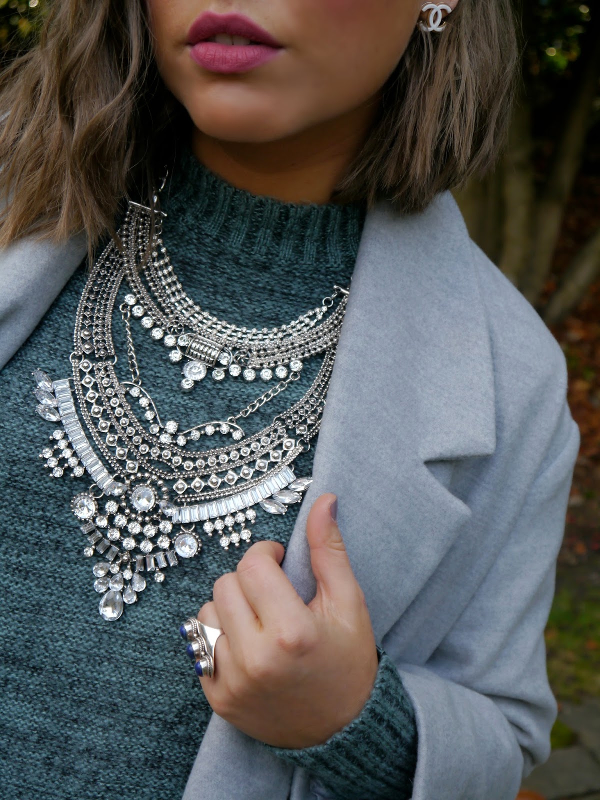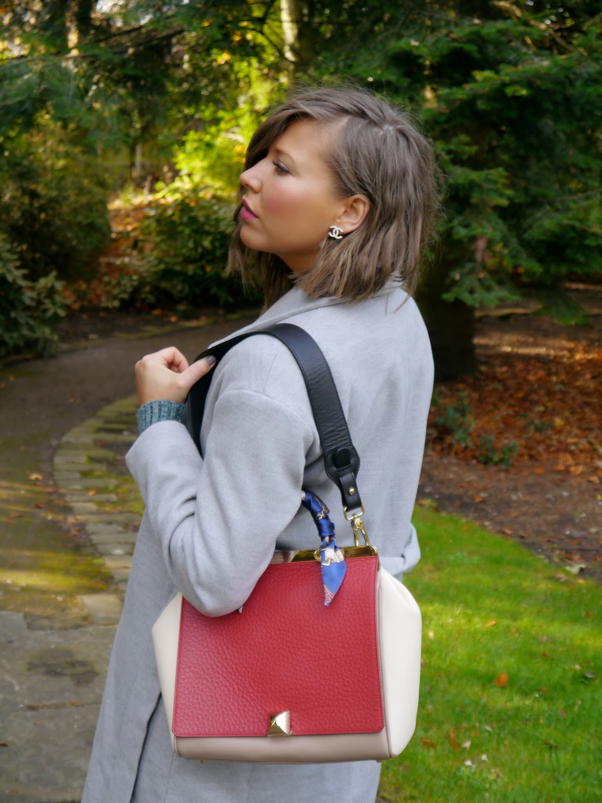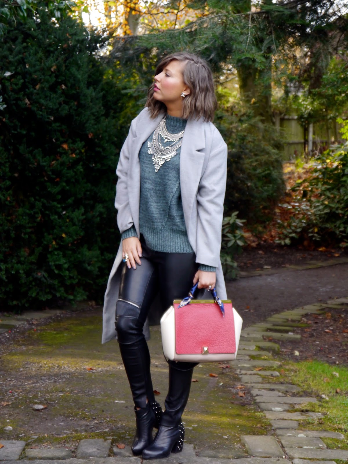 Everything that I’m wearing in my today’s post is gonna be my November/December uniform -oversized knit, long coat, leather skinnies and my new Furla Cortina bag!! Autumn/Winter season is very close to my heart because I truly love cosy knits, big hats, oversized everything and long grey coats. The latest addition to my wardrobe this week is oversided long great coat by SheIn HERE and Label Lab slouchy soft & warm knit jumper in blue HERE I’m in love with slouch exposed seam details ribbing around the sleeves, hem and neckline, making it unique and edgy. The jumper’s soft handle and slouched style makes it extremely comfortable to wear, with the stepped hem making it funky and eye catching. I paired it with faux leather biker trousers HERE to give my look an edgy feel. Of course, my outfit would’t be complete without my no.1 bag this month – my new Furla Cortina with leather top handle which will appeal to both classic style lovers and uber-chic fashionistas. To accessorise my OOTD I added this gorgeous statement neckless by Happiness Boutique HERE which suited this look perfectly. I hope you had an amazing Tuesday and don’t forget to enter my GIVEAWAY for a chance to win a Furla Piper bag! HERE Speak soon X
