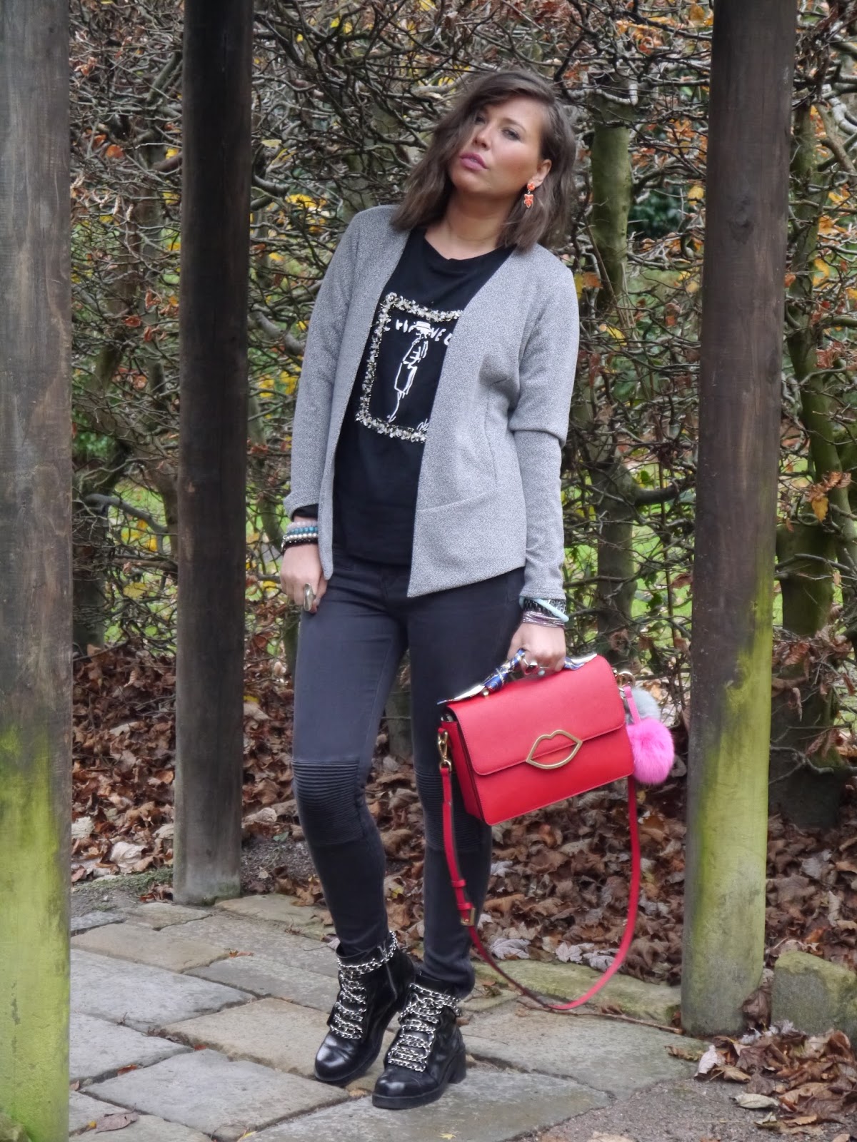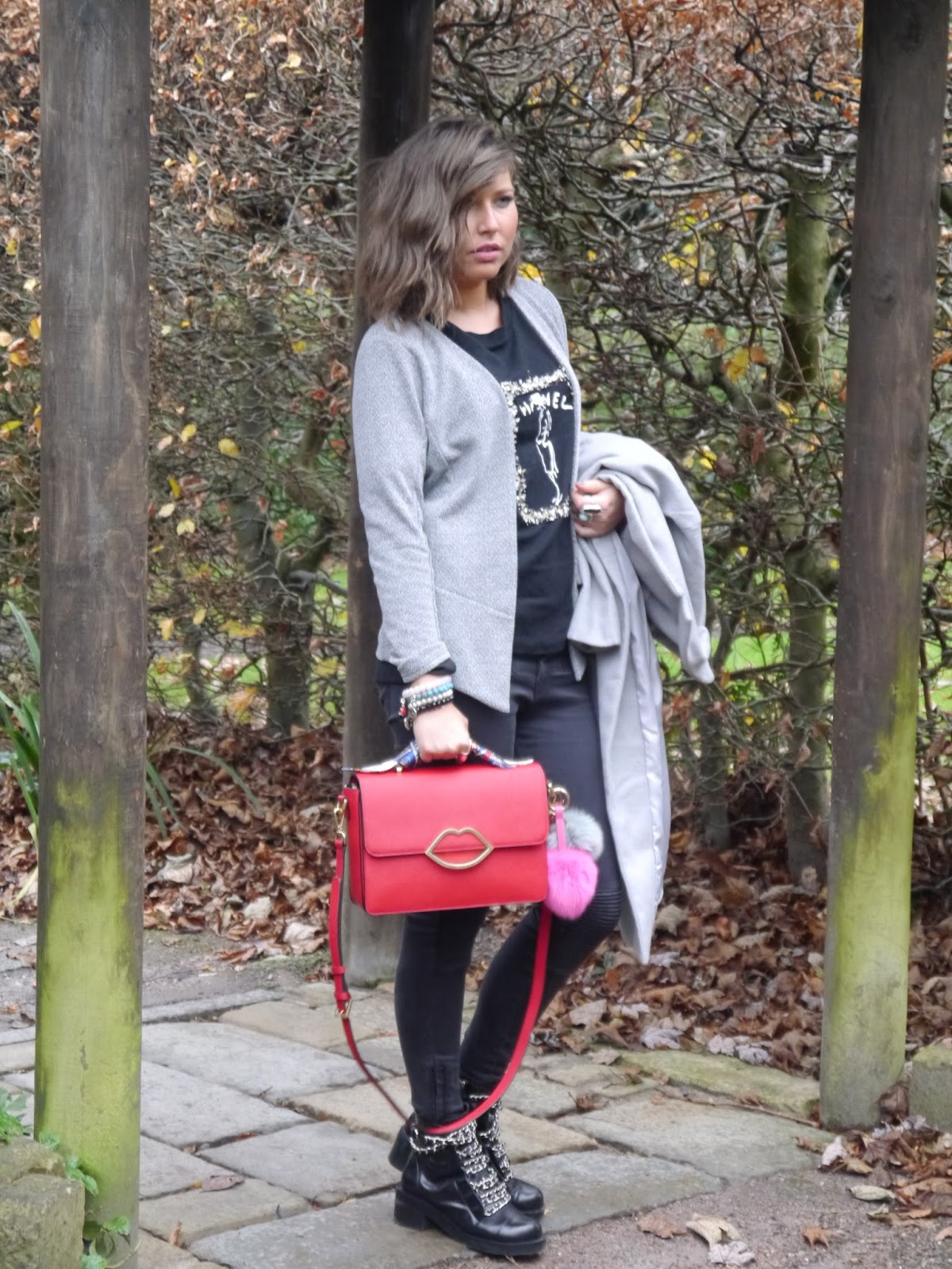 Hello my lovely readers! Today I am blogging about my new monochrome blazer by Therapy LondonHERE . Blazers are my huge love, and I usually wear them all year round! My obsession with blazers started ages ago and the reasons are strong – they are sophisticated, they are elegant, they are .. a true expression of feminism! But the most important quality of this piece is versatility. It’s the biggest fashion crime not to have at least one in your wardrobe, in mine blazers are certainly a staple. Casual or formal, blazers are an ideal addition to any outfit. There are so many different styles of blazers out there, but the standard double-breasted and two-button design is truly classic. I paired it with my new oversided long grey coat by SheIn HERE I accessorised my look with one of my favourite bags from my collection by Lulu Guinness. Its red crosshatched Saffiano leather Edie Cross body bag (sold out but a similar style is available HERE )This bag is for sure a show stopper. Every time I wear this masterpiece I get asked the same question “Where is this bag from??” My Lulu bags always make a perfect accessory for any of my outfits. I would love to hear your opinion on my today’s look Xx
