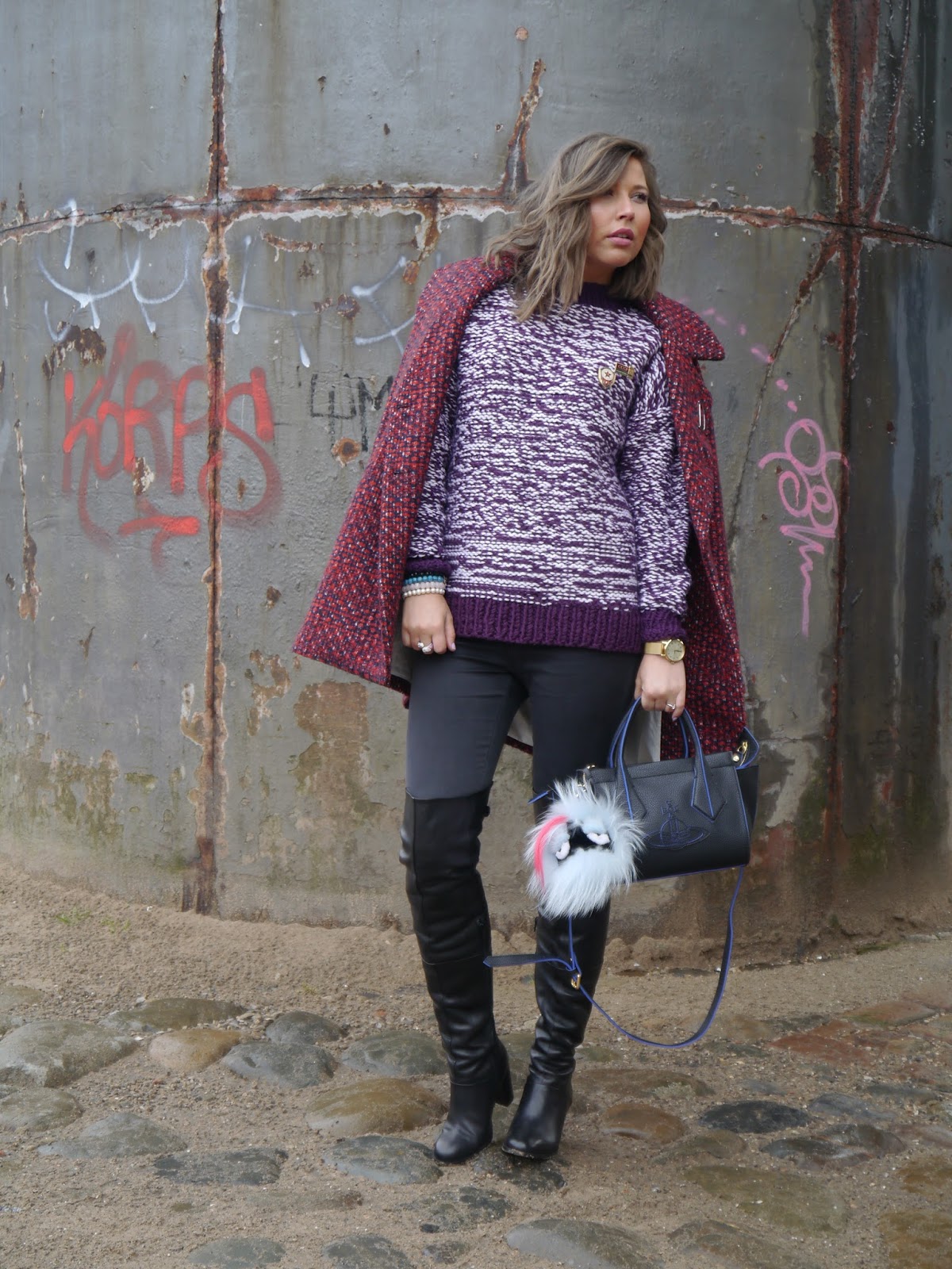 Hello my lovely readers! In my today’s post I want to write about my new oversised knit jumper that my mom knitted for me. Every winter we are on a mission to find that perfect piece which will look cool while keeping us warm, and there’s nothing cosier and cooler than an oversied sweater . One of the season’s biggest trends, it can be seen in this autumn/winter collections of both top designers and high street brands such as Michael Kors, Stella McCartney, H&M, Topshop; go for fisherman styles, basic cables, and crew necks and pair them with slouchy pants and skirts in varied lengths to create a modern cool-girl uniform. In my case I pared my must have warmest ever jumper with over the knee leather boots by Topshop (similar HERE ) and skinny jeans. To accessorise, I added my new Vivienne Westwood Venice bag with fluffy pompom charm.
