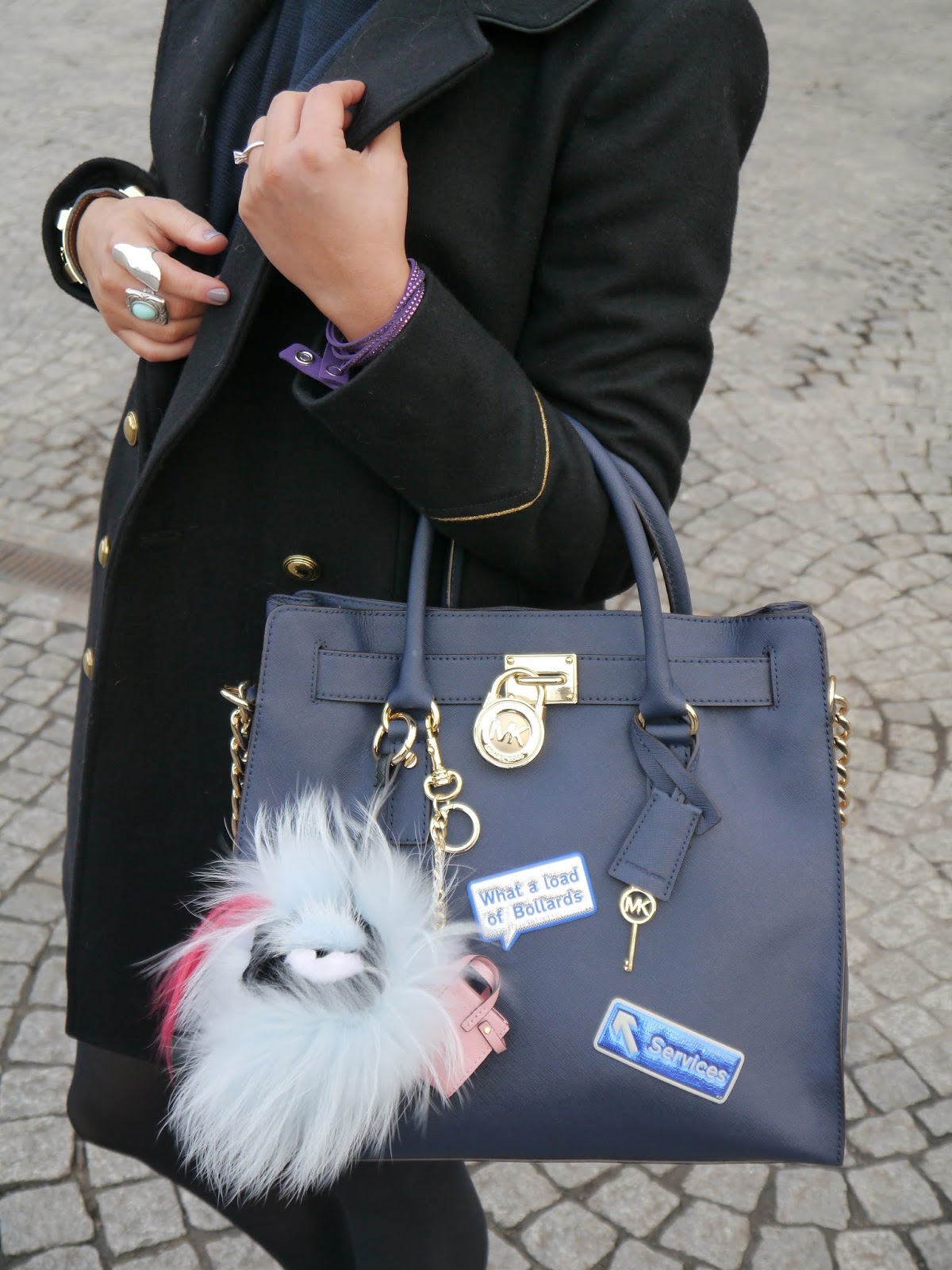 Today I want to blog about 90’s trend that dominated this season’s hight street. The 90’s have truly returned in all of their glory, with plaids and dark grunge making coming at us in full throttle. Brown lipstick shades and various different 90s trends have been making a huge mark in the fashion world recently. It seems that all of us have caught the nostalgia bug and we can’t help but display the symptoms in our style choices. One of the cutest trends from our childhoods that have made a recent comeback is patches! I always loved all kind of badges and patches. It’s the easiest way to customise your outfits while adding a lot of uniqueness to your jumper, dress or coat. Well, it seems that patches are becoming a huge trend once again. One of the best high street examples of the return of this very well known childhood trend is Zara’s retro patch dress available in their Trafaluc collection. This gorgeous piece is the ultimate t-shirt dress as it features various different stitched on patches throughout the dress. The dress is only £25.99 (this colour is sold out but it also available in white HERE ), making it the perfect style steal for those of us hoping to rock an old trend from our childhood. I added my Mango military style coat , Quay Australia sunglasees ” My Girl” and my favourite Michael Kors Hamilton bag which underwent some radical transformation with the help of Anya Hindmarch leather stickers and Fendi style pom pom.
