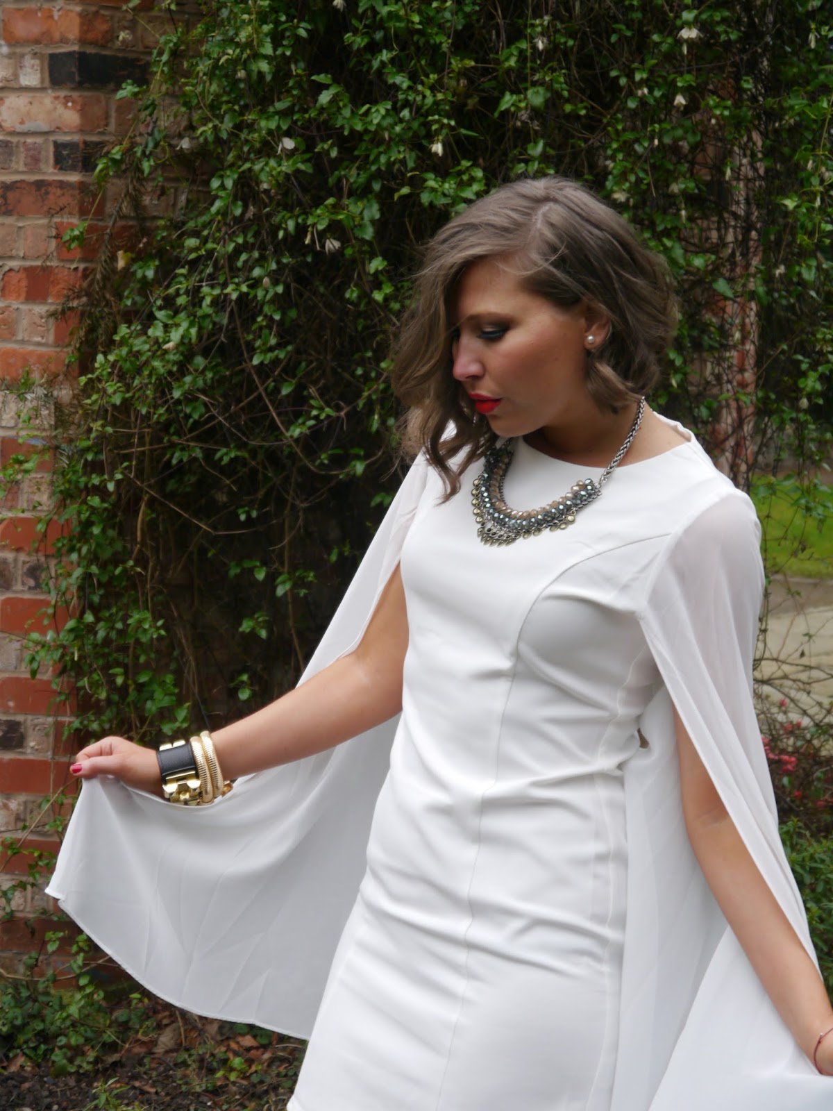 I decided to choose this stunning Elodie Crepe Flared Sleeve Cape Dress HERE from the brand’s limited edition range. This dress is a true embodiment of luxury fashion! You will look totally chic this season in this white cape overlay dress. Made from a luxury fabric with floaty overlay, long flared cape sleeves this dress will make everyone stop and stare. I paired this dress with my over the knee boots from In The Style HERE which go perfectly together. These heels are a perfect addition to any girls’ wardrobe, thanks to their versatility they could be worn by day or night – an absolute killer. Also, I want to mention that my make up for this shoot was done by a very talented make up artist Dani, you can check out her work HERE .