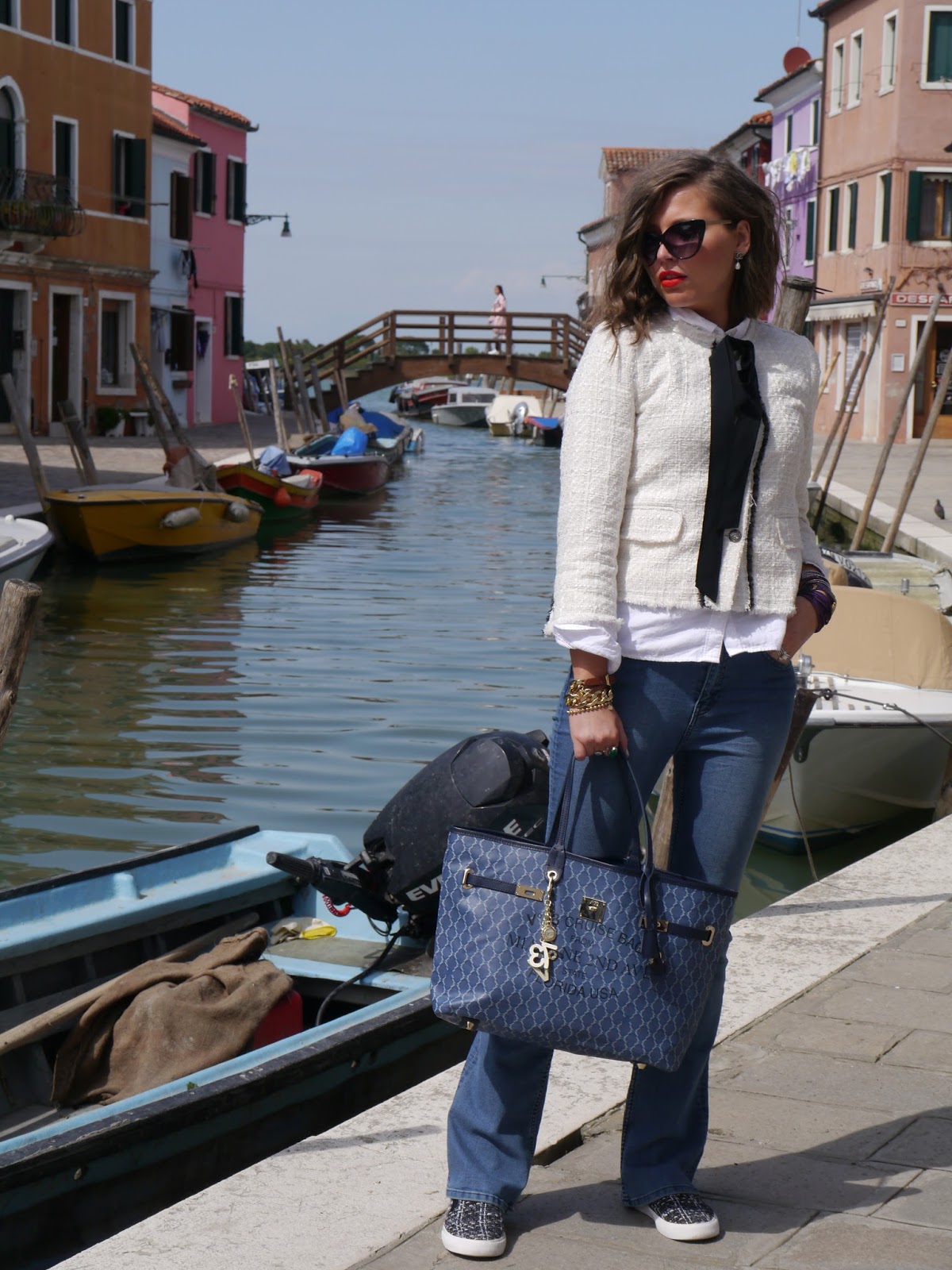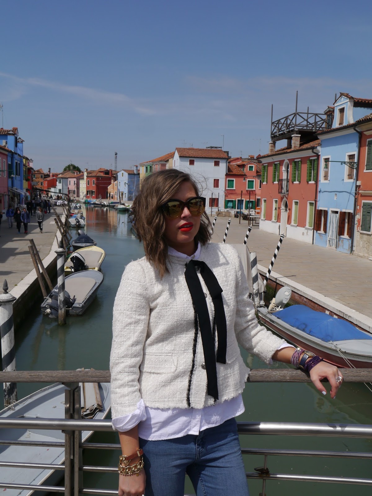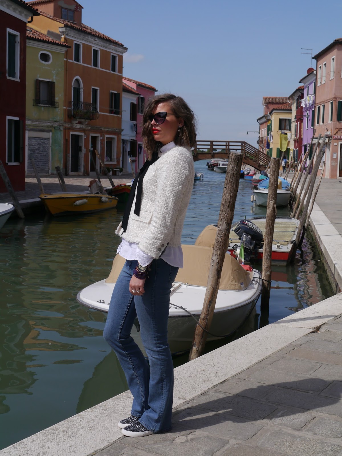 My today’s outfit we shot in a very unique location – a small island of Burano not far from Venice. It is often referred to as one of the most colourful places in the world due to its small, brightly painted houses. The colours of the houses follow a specific system originating from the golden age of its development, if someone wishes to paint their home, one must send a request to the government, who will respond by making notice of the certain colours permitted for that lot. The whole place looks like a magical fairy tale – the colourful houses and shops will blow you away!