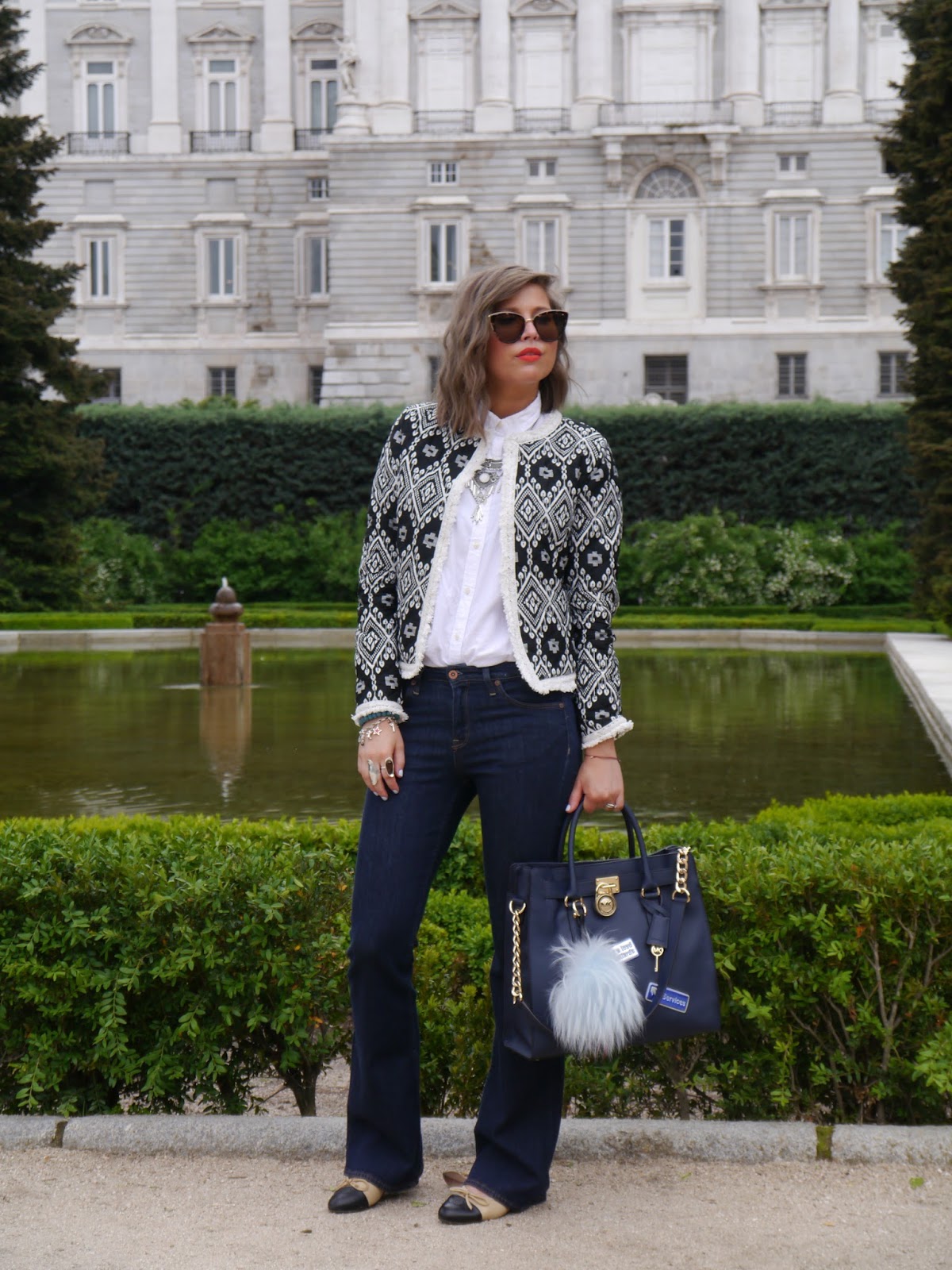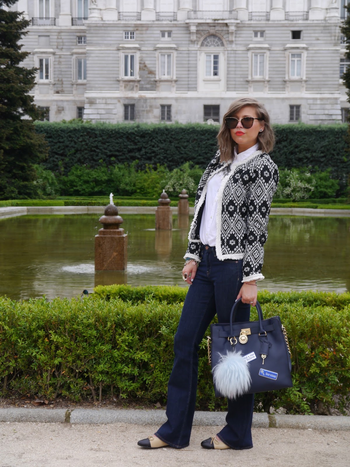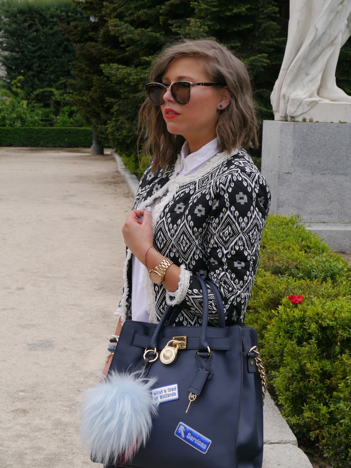 To give my look seventies vintage appeal I wore my number one jeans for this season – flared jeans from H&M. I’ve been stuck in a skinny-leg fog for so long now, I’ve forgotten how great it feels to let a little extra fabric swish around the ankles. To finish my look I opted for my Michael Kors Hamilaton bag. With customised Anya Hindmarch stickers HERE and a Pom pom the bag looks very different and suits the look’s vibe perfectly.