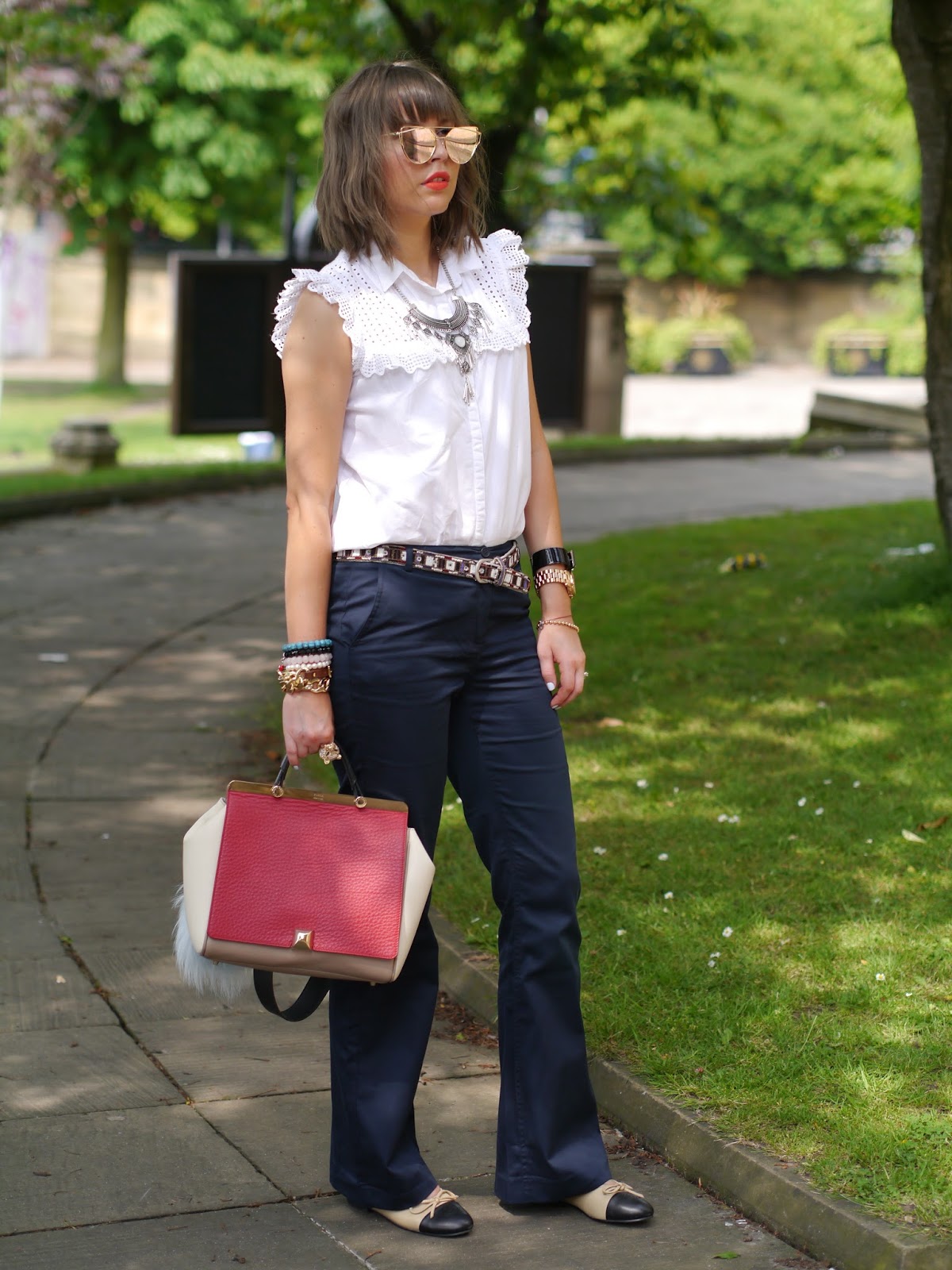 I have had a browse through LaRedoute website quite a few times last week and finally decided to make an order! LaRdoute has worked with some of the biggest names in fashion from Karl Lagerfeld, Jean-Paul Gaultier to Naomi Campbell. Their pieces are very feminine and stylish, recreating effortless french style. As you may already noticed, I am currently highly inspired by 70’s boho chick style so I was over the moon when I saw so many beautiful 70’s pieces under one roof. First was these super slick Seventies Style Flared trousers , an easily dressed up or down piece. I can wear them with flats or heels for day and night looks. I paired these trousers with this very flattering Mademoiselle R blouse also from LaRedoute . I fell in love with this white (also comes in black) blouse straight away! Its a very boho style piece with a ruffle collar, delicate embroidery and short sleeves. Perfect for summer and even for autumn as you can pair it with a leather jacket. Finally, I added this season must-have mirrored sunglasses in rose gold from Futurocks. I hope you all are having a wonderful week. Speak soon X