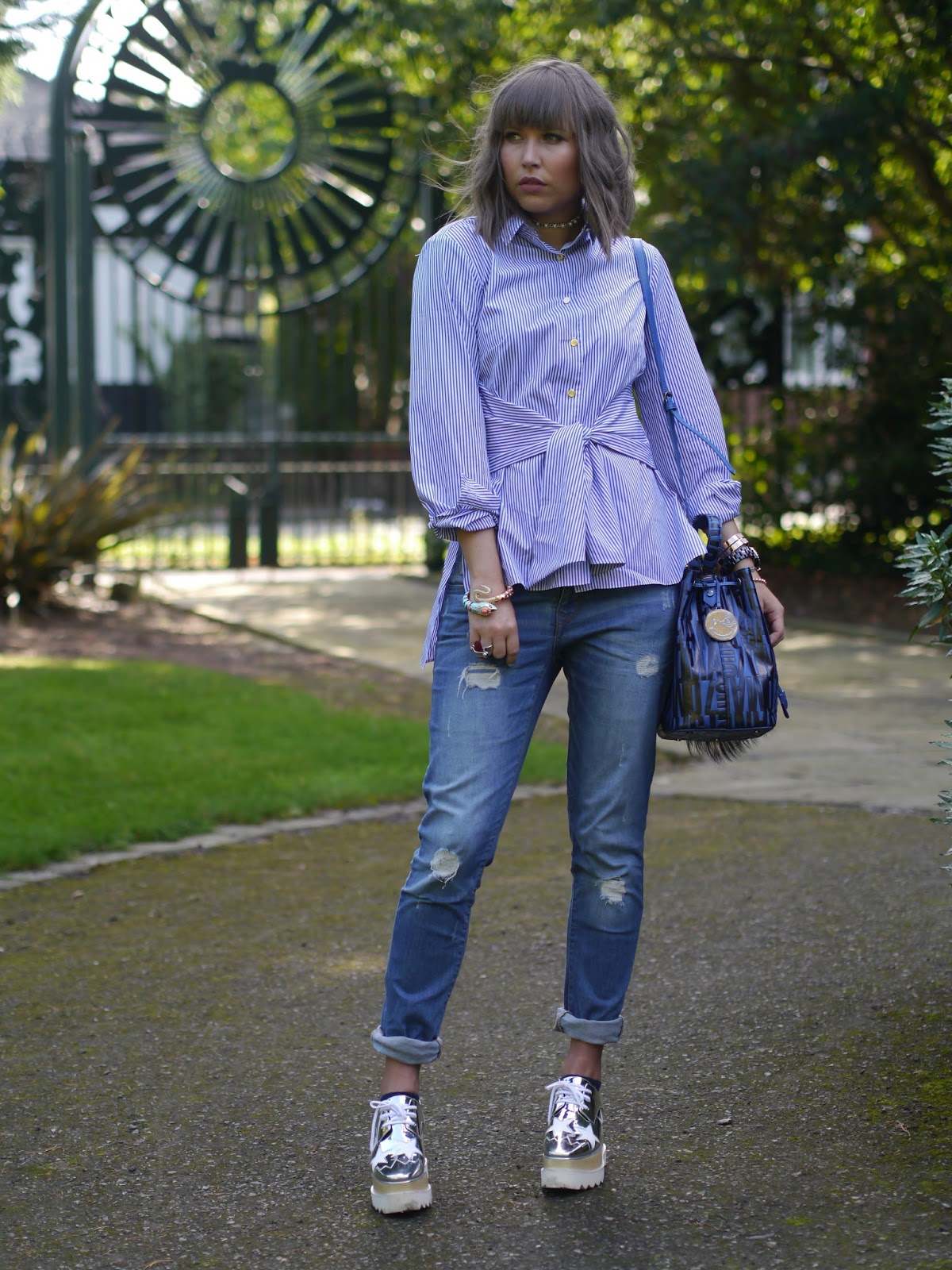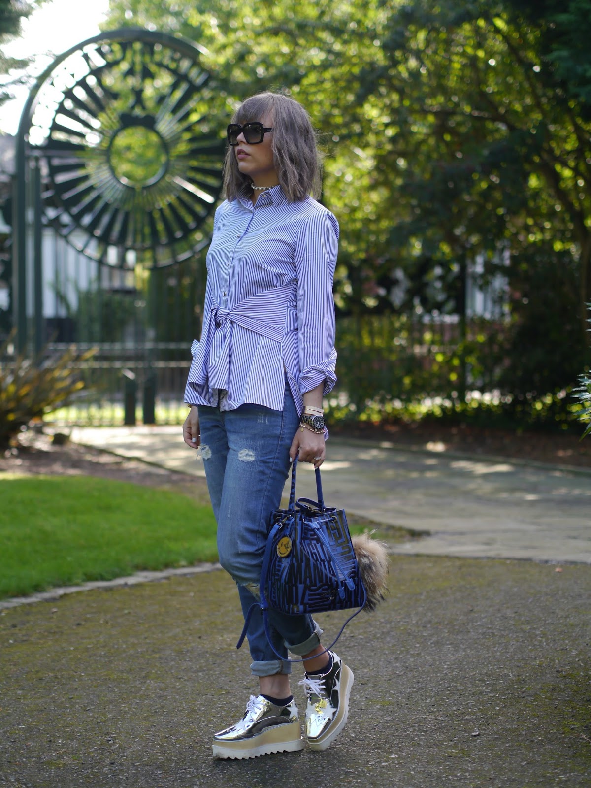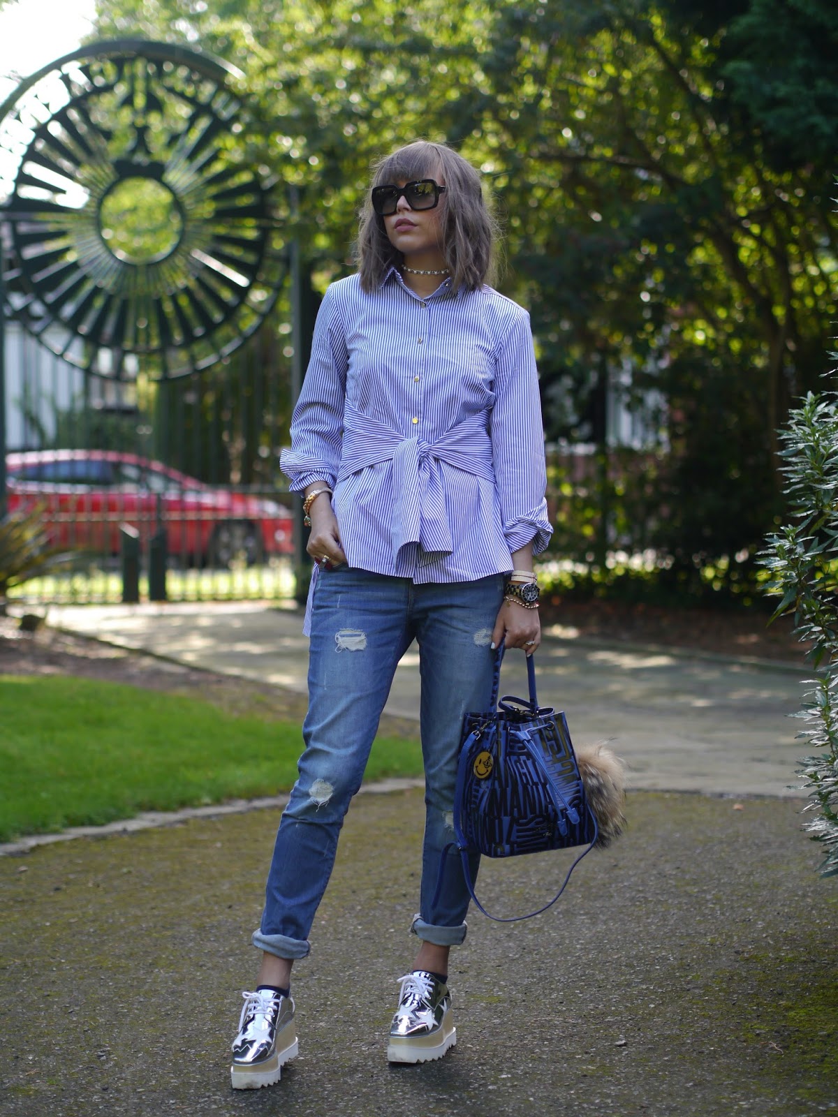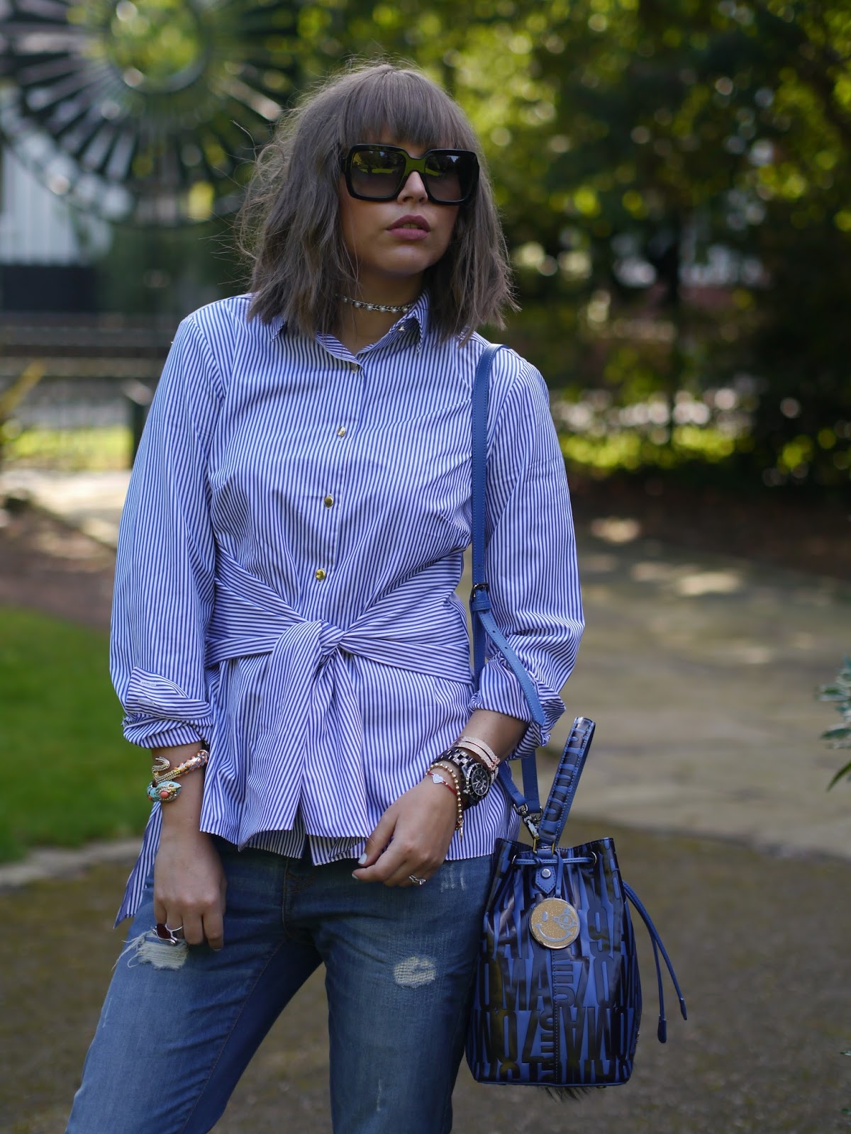 Hello my lovely readers! I’m finally back from my holiday and today I want to blog about this new chic and feminine shirt by Closet London As you know, I have a massive love for stripy shirts – an indisputable statement piece in any fashionista’s wardrobe. This beautifully crafted shirt comes with clean styling and contemporary details, but what really drew me to this shirt was its tie front feature which added a lot of sophistication to my look . This Blue and White stripe blouse looks extremely chic thanks to the knotted front that makes every look ever more interesting. I paired it with Primark jeans, Vivienne Westwood bucket bag, platforms by Stella McCartney and overused Prada sunglasses. I hope you all are having a fabulous start to September, I’l speak with you all very soon.
