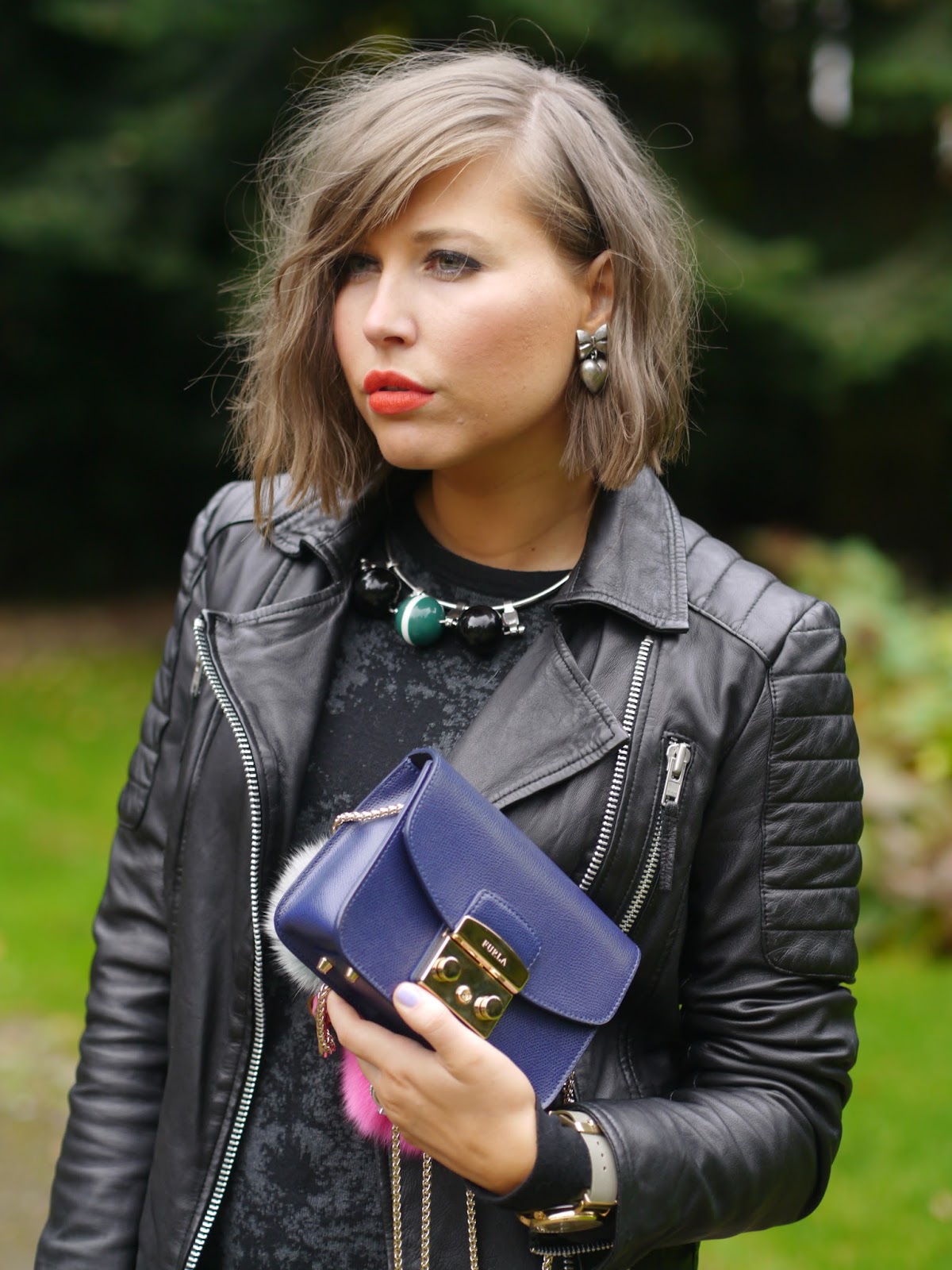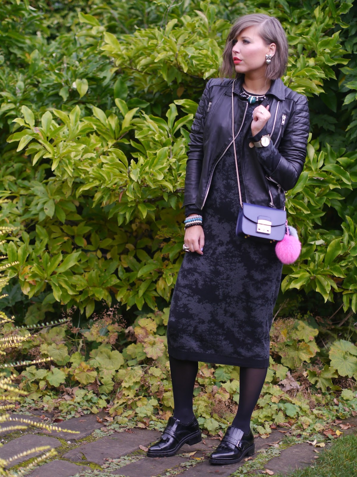 There are few pieces of outerwear that have reached “grail” status to such a degree as the leather jacket. First worn by army pilots and soon coopted by socialites and movie stars in the first half of the 20th century, the leather jacket signifies cool. By now we all know that it works well with our most basic and classic wardrobe staples like black pants and jeans, I decided to style my Marcella leather jacket from YourShores with mini dress from H&M. I already talked about my new stylish must have jacket in my previous blog post but I wanted to feature it again as it’s an essential item in my wardrobe. I will definitely be taking my motto jacket into the winter looks by wearing it over a midi dress or jeans. . This combination brings together edgy and romantic elements for a very cool balance. To accessorise, I added one of my neawest bags mini Furla Metropolis which I got from Very Exclusive , what I love about this IT shoulder bag is its small size and amazing colour which makes it wearable at any occasion. Perfect! X