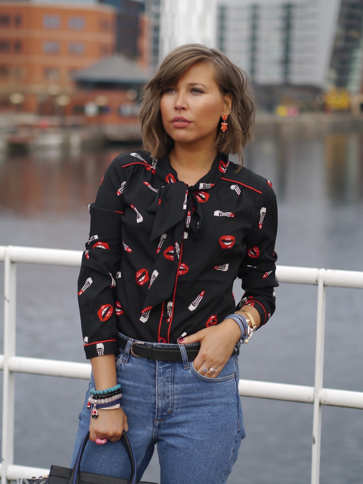 Hi guys ! Today I want to blog about my perfect autumn look. I think it goes without saying that it is essential for all of us who loves fashion to have blouses in multiple colours blouses in our wardrobe. My new “it” blouse is from Joanieclothing online store and I’m in love with this flamboyant lips & lipstick “Angelie” print blouse. Depending on how you wear it, the blouse can give you a very different allure. You could indeed, roll up your sleeves or let them long, button your collar to the top of open it to reaveal your neckline, use it to accessorize your sweater or make it the star of your outfit, etc. I wore it with high waisted jeans from H&M and my amazing new winter coat from Warehouse. I can’t wait to style this blouse with skirts and leather legging for the Christmas parties. I cannot praise enough my extremely warm oversized biker jacket by Warehouse that I won with Manchester Arndale Shopping centre. This luxurious shearling style coat is incredibly cosy and it serves as a perfect layering piece adding an edger look to my ootd. I hope all my readers are having a fabulous week . Speak soon . X